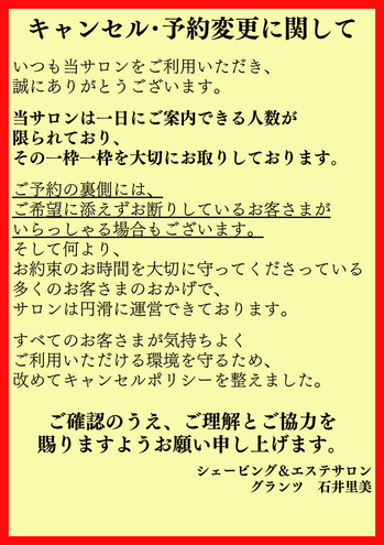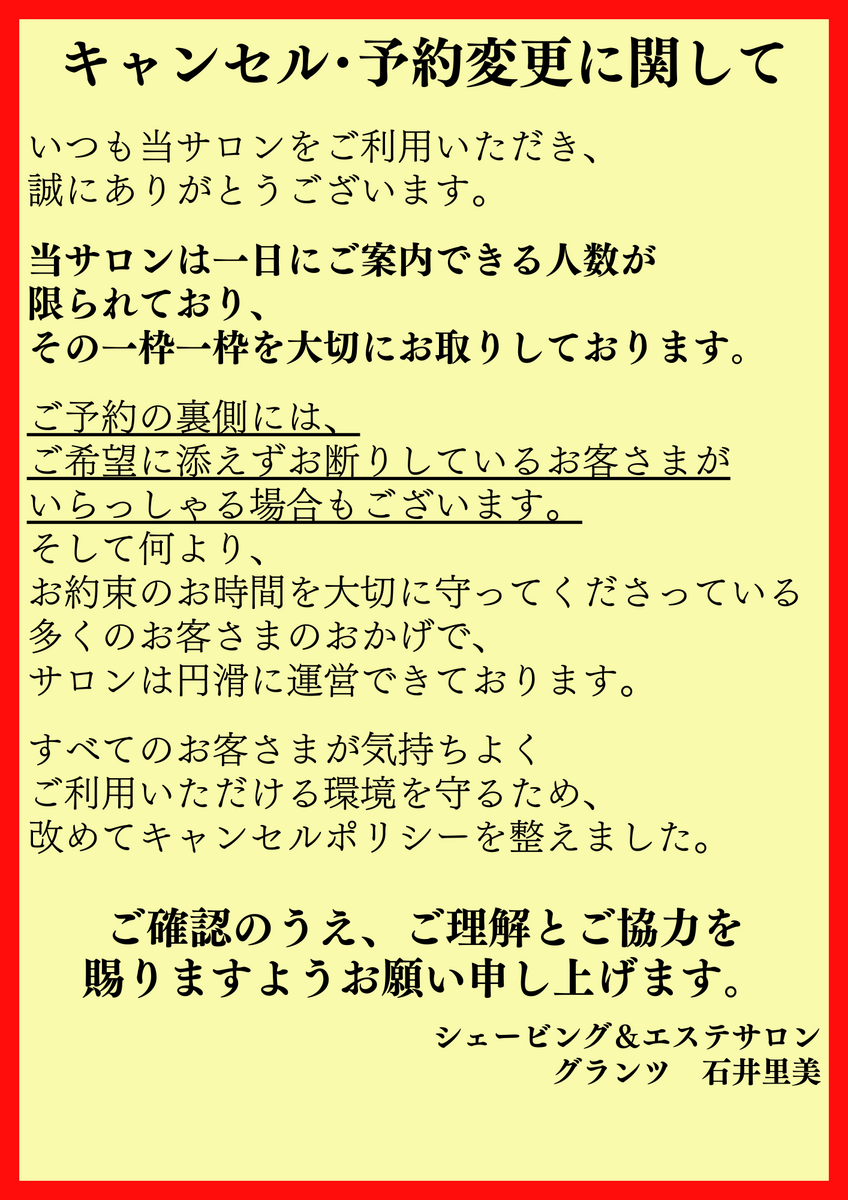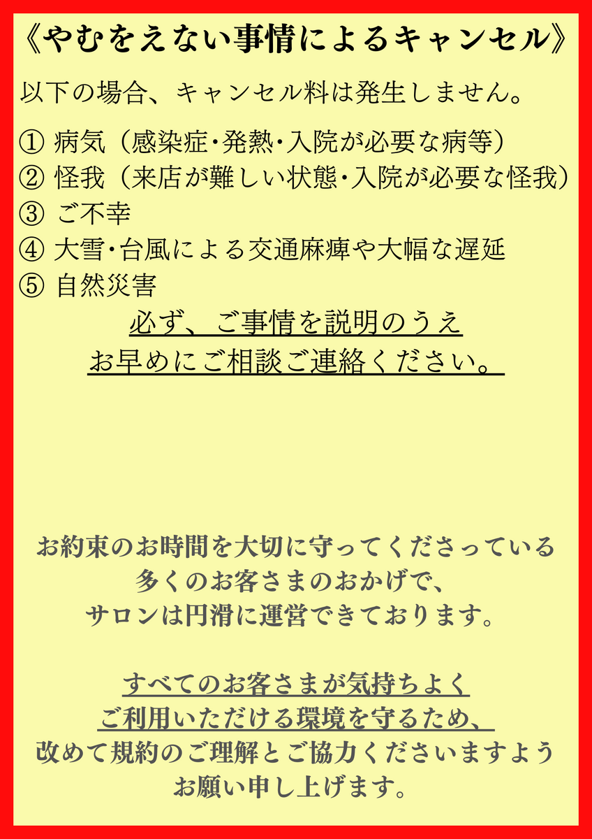 【重要 必ずお読みください】キャンセル・予約変更・遅刻に関して